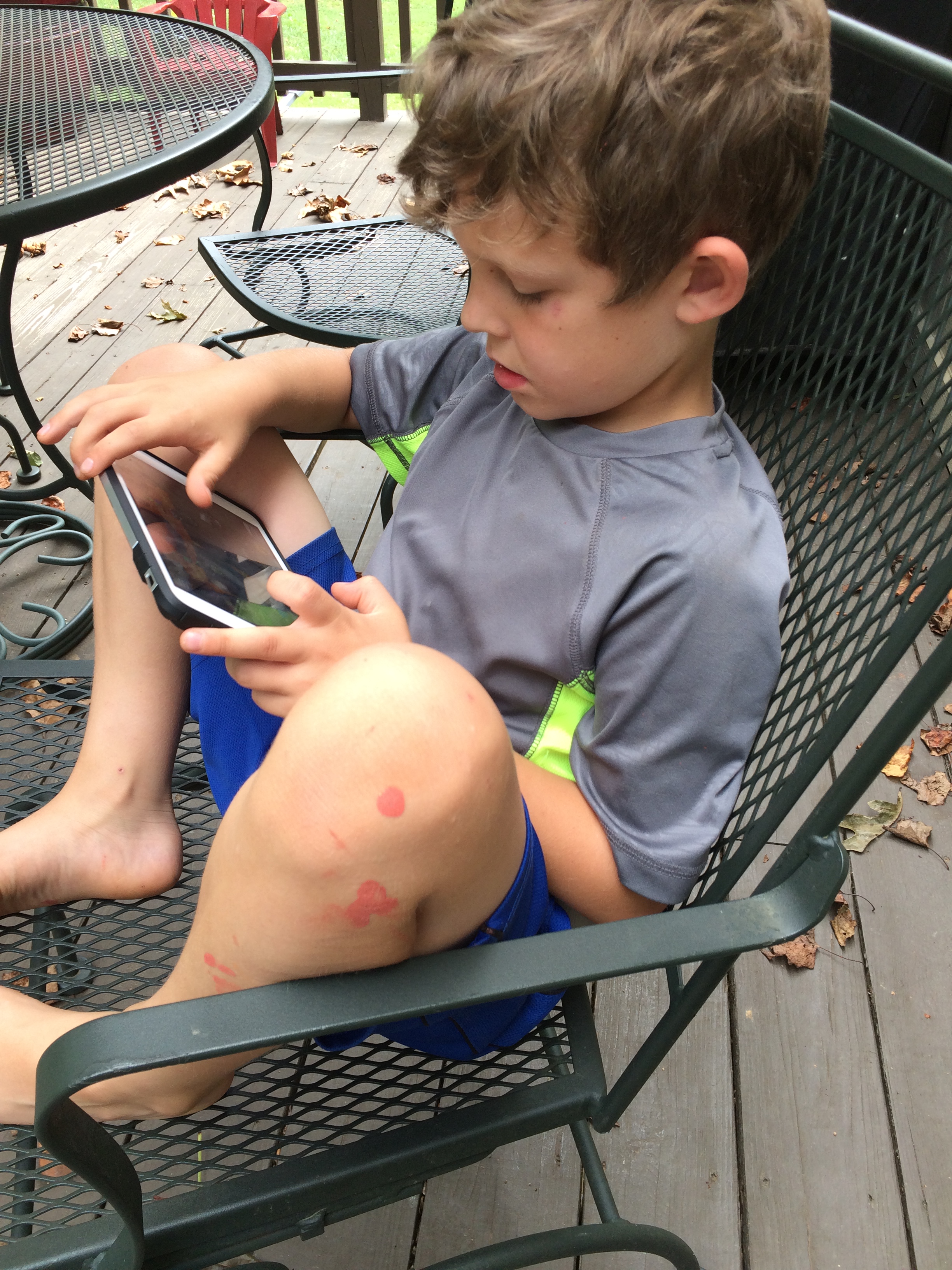 Silence and blank stare on my son’s part accompanied by more rubbing.
